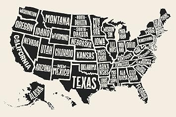 Amazon.com: EzPosterPrints USA Maps with States Details Posters Black & White USA map Adobe Illustrator vector File, Cut Out Style.