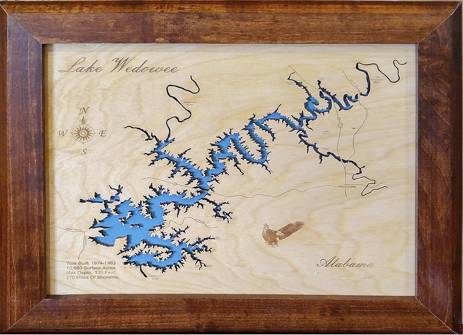 Amazon.com: Lake Wedowee Alabama: Framed Wood Map Wall Hanging Wedowee, Alabama Cost of Living.