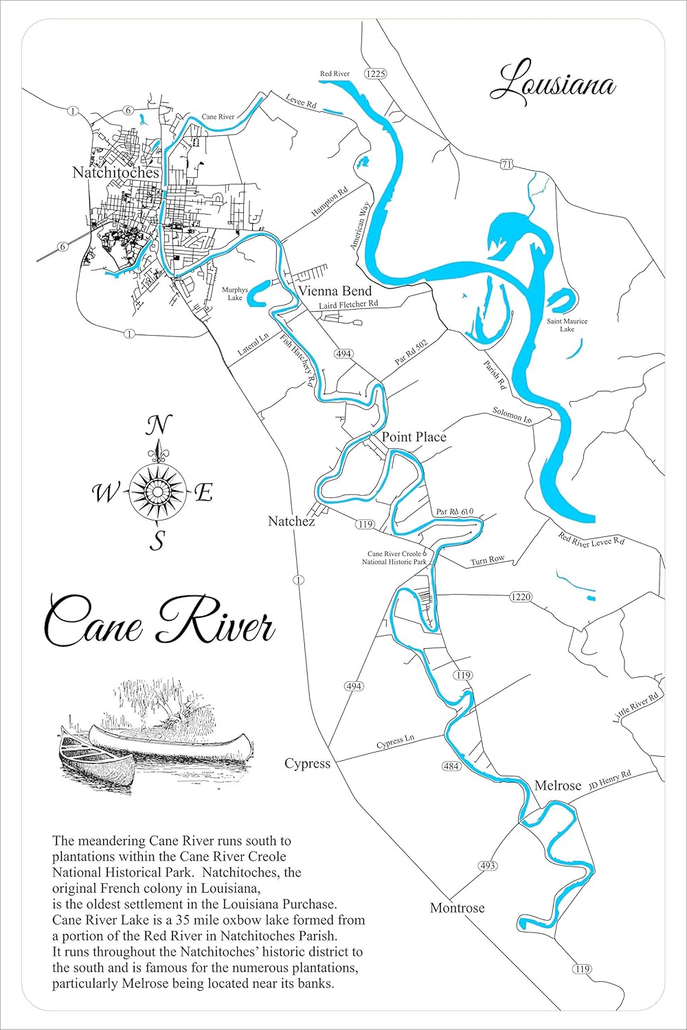 Cane River, Louisiana Wood Laser Cut Map | PhDs on ArtFire Cane River Historic Landmark District Map | Cane River National .