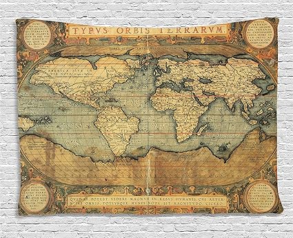 Amazon.com: Ambesonne World Map Tapestry, Ancient Old Chart World: Old World Map Tapestry Wall Hanging :: Maps and Travel .