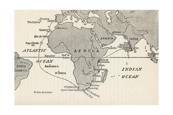 Map Illustrating Vasco Da Gama's Voyages, from 'The Great Map of the first voyage of Vasco da Gama A History of Europe .
