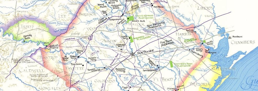 Genl. Austin's Map of Texas with Parts of the Adjoining States, 1840 Austin Texas old vintage colorful map, original gift for office .