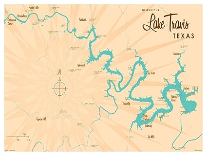 Amazon.com: Lake Travis Texas Map Vintage Style Art Print by Maps of Lake Travis.