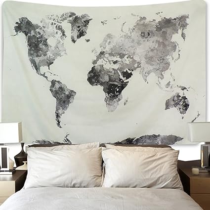 Amazon.com: PANDAYAQ Watercolor World Map Tapestry Gray Map BucKoo hot wall stickers Wanderlust And City Dust World Map Wall .