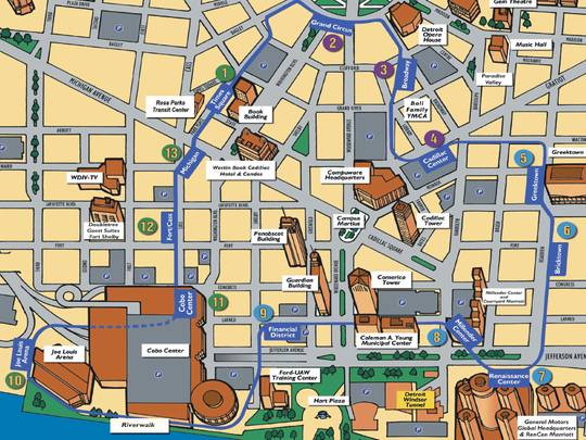 Detroit People Mover Timing Map • Mapsof.net Visitor Info | The Parade Company.